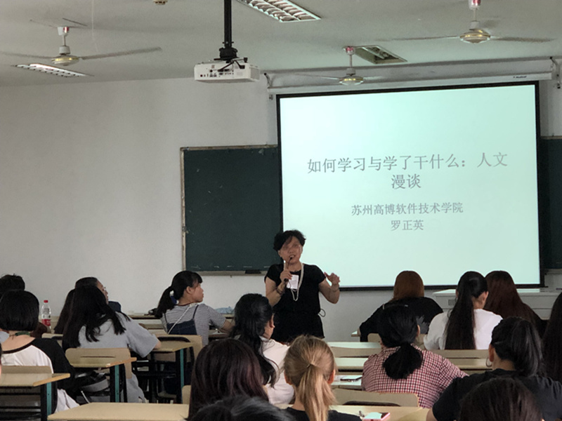 (图为罗正英教授演讲:“如何学习?学了干什么”)