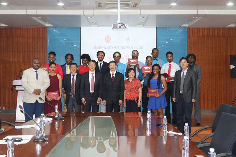 6月23日下午,det365在线平台国际学院在实训楼会议室举行了det365在线平台与西印度大学2+2项目首届毕业典礼。出席本次典礼的校领导有校长朱秀林教授,副校长倪筱琴、副校长张建初教授,院长办公室主任王绍福先生,典礼由国际学院院长卢宁主持。
