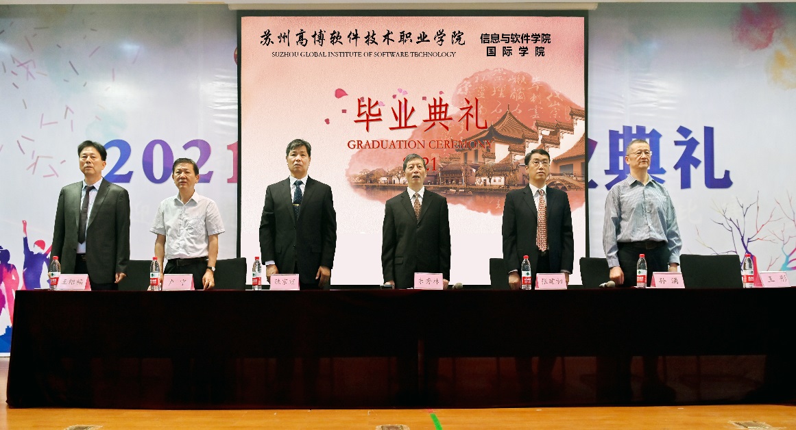新的时代,需要有志青年具有新的担当,无论将来同学们在何种岗位上工作,都将不可避免地成为建设社会主义现代化新型国家的中坚力量。2021届毕业生即将离开母校,扬帆起航。母校希望同学们坚守初心,牢记使命,从高博起步眺望世界,用时间和汗水浇灌梦想,用耐心和坚持收获希望。母校和老师们的目光将永远追随同学们,盼大家一生平安、祝大家一生幸福!最后,毕业典礼在《毕业歌》激昂的旋律中圆满结束。