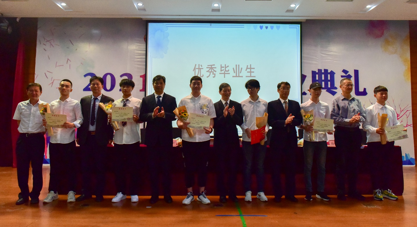 在气势恢弘的音乐声中,各位校领导分别为2021届优秀毕业生、国际学院毕业生、信软学院毕业生颁发奖状及毕业证书。同学们手持奖状和证书与学校领导合影,脸上洋溢着青春的笑容。报告厅内的家长、老师和同学不时爆发出热情的掌声。