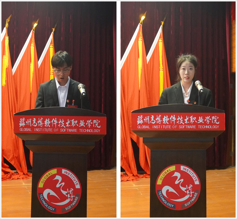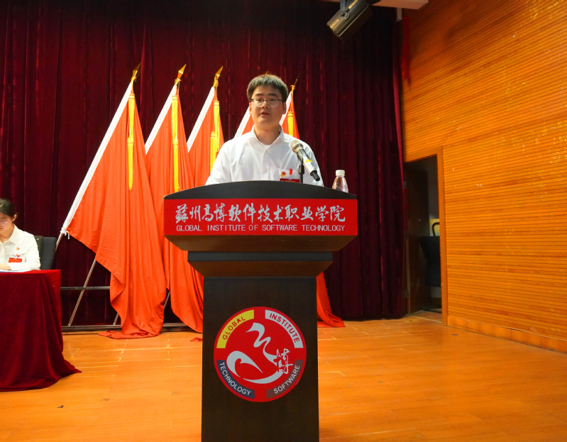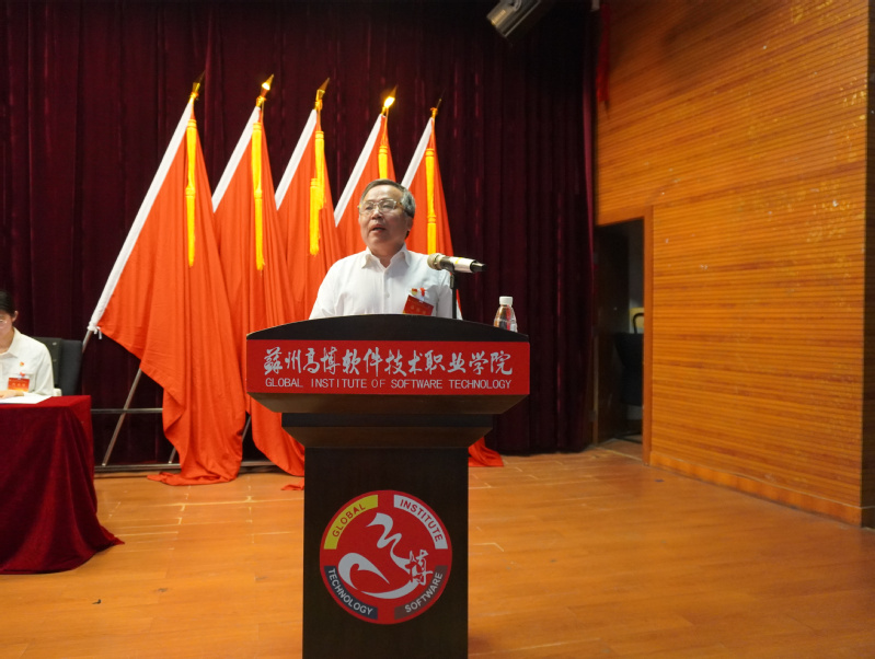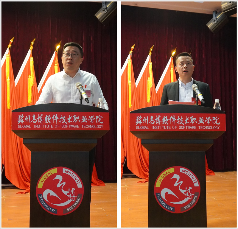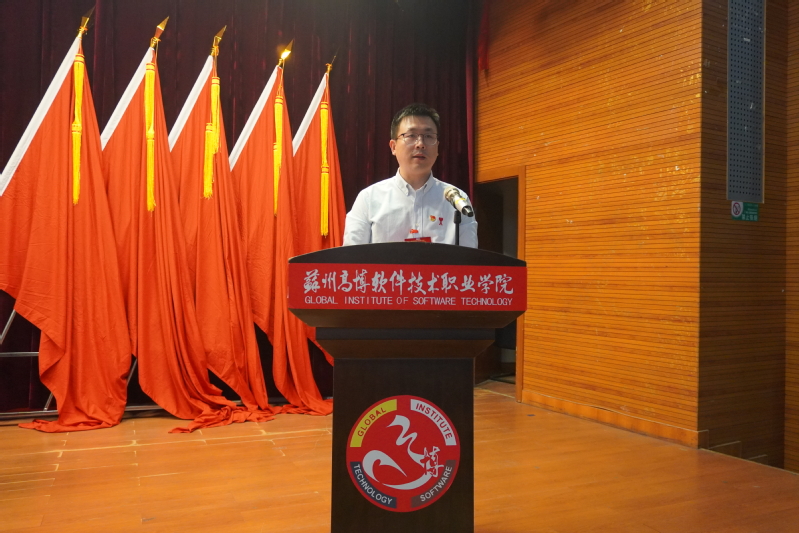 学校第三届工会委员胡玮和昆山登云科技职业学院团委书记侯延华分别代表群团组织和兄弟院校向大会致辞。