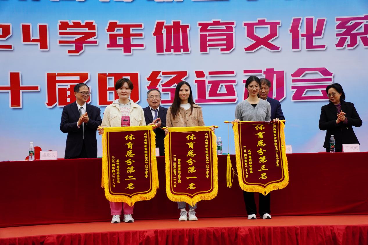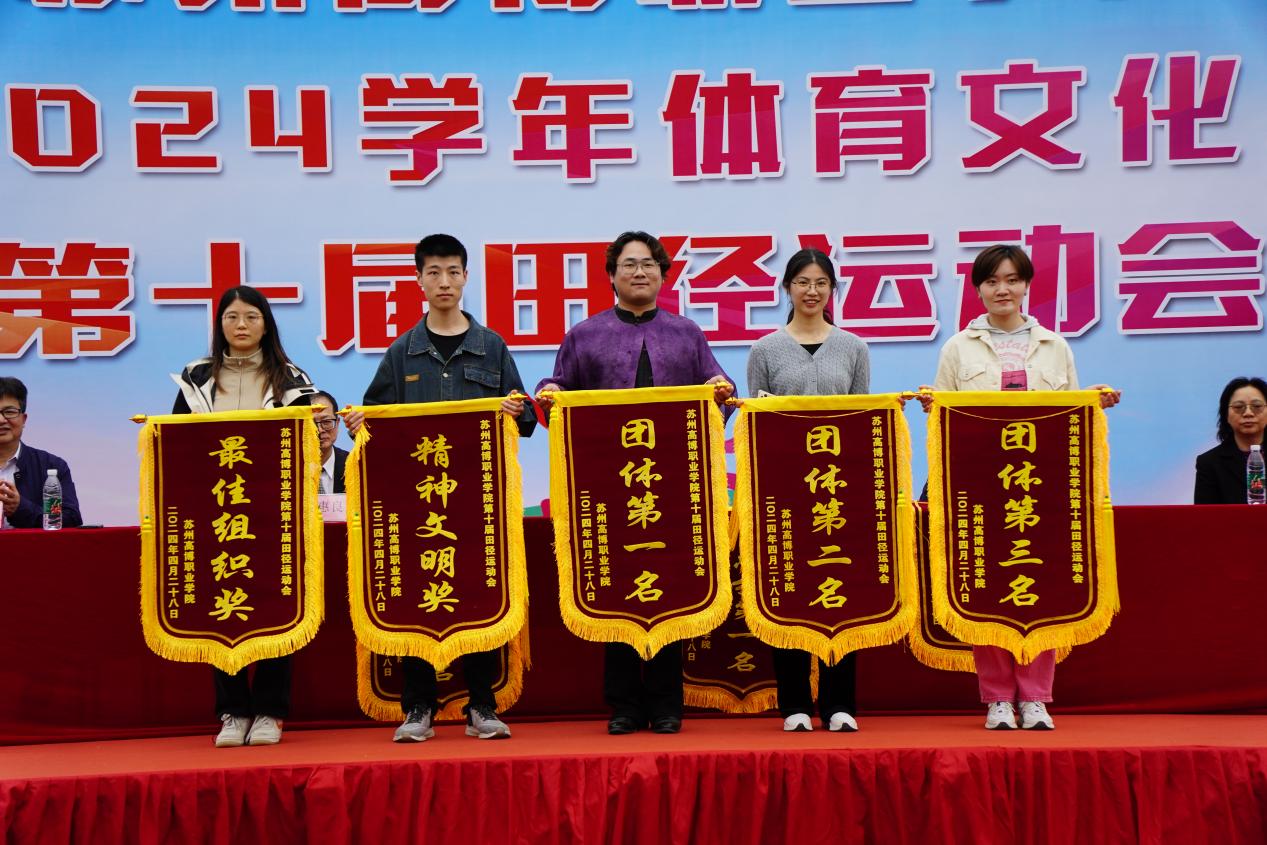 最终经过激烈角逐,各项比赛圆满结束。在本届运动会中,人文社会科学学院荣获团体第一名,医学与公共服务学院与信息与软件学院分别获得团体第二名与第三名。此外,精神文明奖与优秀组织奖分别被机电工程学院与国际商学院收入囊中。比赛现场还颁发了2023-2024学年体育文化系列活动的名次奖项,人文社会科学学院以总分第一的成绩脱颖而出,信息与软件学院紧随其后,位居第二,医学与公共服务学院则荣获第三名。