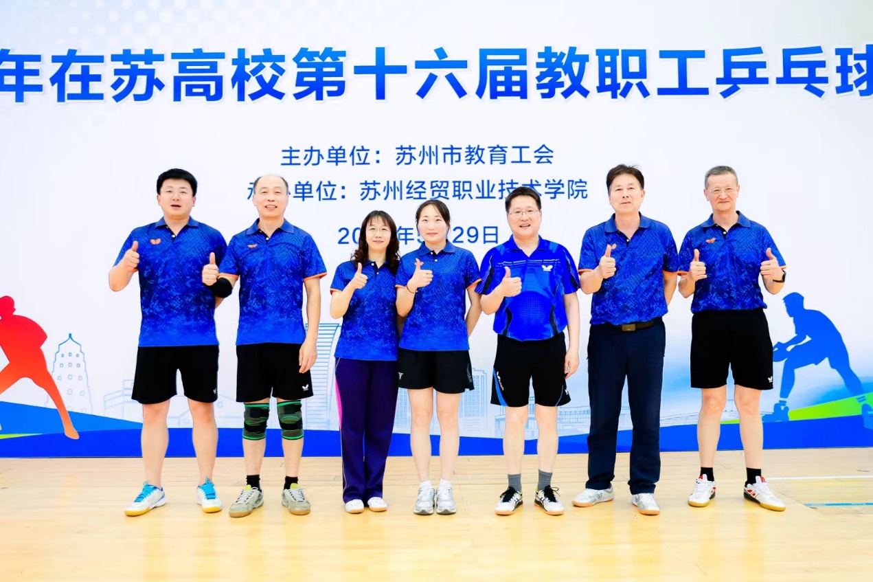 5月29日,由苏州市教育工会主办的在苏高校第十六届教职工乒乓球比赛在苏州经贸职业技术学院火热进行,共有十六支代表队参加比赛。经过全天精彩、激烈地角逐,det365在线平台乒乓球队员们团结协作,奋力拼搏,先后战胜了硅湖职业技术学院、苏州经贸职业技术学院和苏州工艺美术职业技术学院等强劲对手,最终荣获团体第五名的好成绩。
